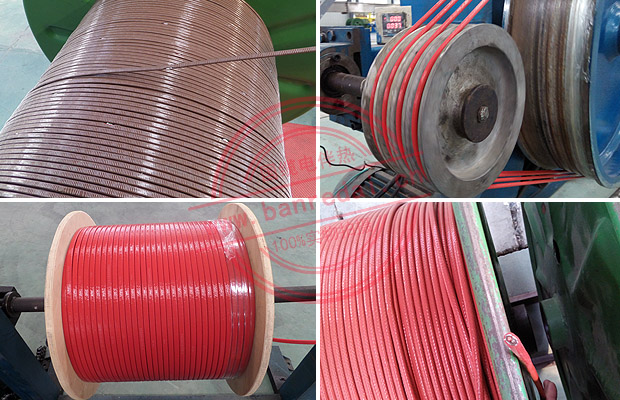 電源母線為二根平行的絕緣軟銅線,在內(nèi)絕緣上纏繞鎳鉻電熱絲,并將電熱絲每隔一定距離(即“發(fā)熱節(jié)長“)與母芯線連接,從而形成連續(xù)的并聯(lián)電阻。母芯線通電后,各關(guān)聯(lián)電阻發(fā)熱,因而形成一條連續(xù)的伴熱帶,而且可以根據(jù)使用情況發(fā)熱節(jié)長度任意剪接。